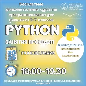 Бесплатные дополнительные курсы по программированию на Python для учащихся 5-7 классов Добро пожаловать в увлекательное путешествие мира программирования! Эти бесплатные курсы предназначены специально для ребят, стремящихся познать основы современного программирования и научиться создавать собственные компьютерные программы на одном из самых популярных языков современности — Python!